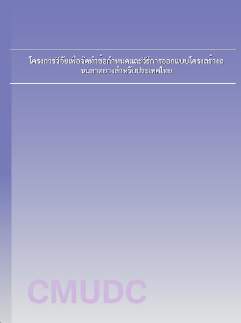 | ชื่อเรื่อง | โครงการวิจัยเพื่อจัดทำข้อกำหนดและวิธีการออกแบบโครงสร้างถนนลาดยางสำหรับประเทศไทย |