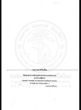 | ชื่อเรื่อง | พันธุศาสตร์การปรับปรุงพันธ์และโภชนศาสตร์เกษตรของข้าวเหนียวดำ : รายงานการวิจัย = Genetics, breeding and agriculture nutritional immunity of purple rice (Oryza sativa L.) / ดำเนิน กาละดี, พันทิพา พงษ์เพียจันทร์ และศันสนีย์ จำจด |