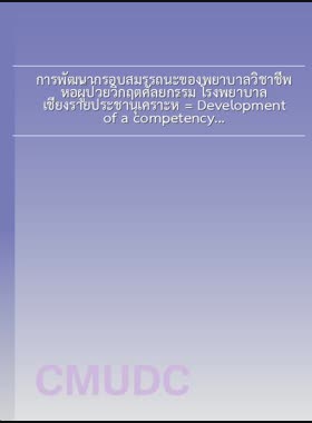 | ชื่อเรื่อง | การพัฒนากรอบสมรรถนะของพยาบาลวิชาชีพ หอผู้ป่วยวิกฤตศัลยกรรม โรงพยาบาลเชียงรายประชานุเคราะห์ = Development of a competency framework for registered nurses, surgical intensive care unit, Chiang Rai Prachanukroh Hospital / มยุรฉัตร ด้วงนคร |