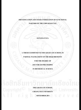| ชื่อเรื่อง | Identification and characterization of functional partner of the CD99 molecule = การระบุและการหาลักษณะเฉพาะของโมเลกุลที่ทำงานร่วมกับโมเลกุล CD99 / Supffansa Pata |