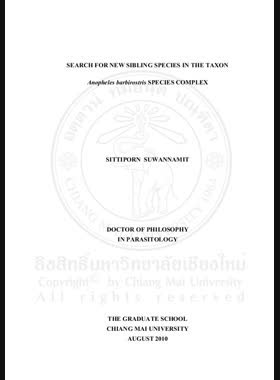 | ชื่อเรื่อง | Search for New Sibling Species in the Taxon Anopheles barbirostris Species Complex = การค้นหาซิบลิงส์สปีชีส์ใหม่ในยุงก้นปล่องกลุ่ม ซับซ้อนชนิด Anopheles barbirostris / Sittiporn Suwannamit |