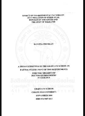 | ชื่อเรื่อง | Effect of environmental factors on accumulation of fossil fuel deposits in the South and the Bulf of Thailand = ผลของปัจจัยทางสิ่งแวดล้อมต่อการสะสมตัวของของแหล่งเชื้อเพลิงธรรมชาติในภาคใต้และอ่าวไทย / Bantita Udomkan |