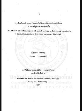 | ชื่อเรื่อง | การศึกษานิเวศน์วิทยาบางเรื่องของสัตว์เพื่อนำมาดัดแปลงเป็นบทปฏิบัติการ I การเจริญของประชากรมอดแป้ง = The Studies on certain aspects of animal ecology as laboratory experiments I population growth of tribolium castaneum (Herbst.) / อุไรวรรณ วิจารณกุล |