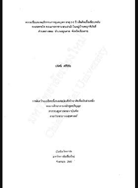 | ชื่อเรื่อง | ความเชื่อและพฤติกรรมการดูแลบุตร อายุ 0-5 ปี เมื่อติดเชื้อเฉียบพลันระบบหายใจ ของมารดาชาวเขาเผ่าม้ง ในหมู่บ้านพญาพิภักดิ์ ตำบลยางฮอม อำเภอขุนตาล จังหวัดเชียงราย / ปรัศนี ศรีวิชัย |