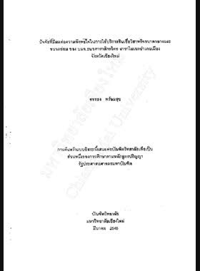 | ชื่อเรื่อง | ปัจจัยที่มีผลต่อความพึงพอใจในการใช้บริการสินเชื่อวิสาหกิจขนาดกลางและขนาดย่อมของ บมจ.ธนาคารกสิกรไทย สาขาในเขตอำเภอเมือง จังหวัดเชียงใหม่ / ยรรยง พร้อมสุข |