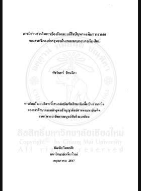 | ชื่อเรื่อง | การมีส่วนร่วมในการป้องกันและแก้ไขปัญหามลพิษทางอากาศ ของสมาชิกองค์กรชุมชนในเขตเทศบาลนครเชียงใหม่ = The Participation of the communities in protecting and solving problems of air pollution in the Chiang Mai Municipality / พัชรินทร์ รัตนวิภา |