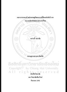 | ชื่อเรื่อง | ผลกระทบของตัวแปรเศรษฐกิจมหภาคที่มีผลต่อดัชนีราคาตลาดหลักทรัพย์แห่งประเทศไทย = Impacts of macro-economic variables on the Stock Exchange of Thailand index / กสานติ์ ชนะชัย |
