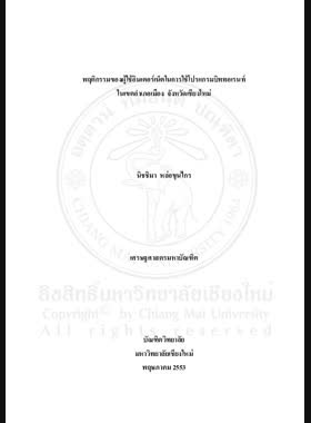 | ชื่อเรื่อง | พฤติกรรมของผู้ใช้อินเตอร์เน็ตในการใช้โปรแกรมบิททอเรนท์ในเขตอำเภอเมือง จังหวัดเชียงใหม่ = Internet users behavior of using bittorrent program in Mueang District, Chiang Mai Province / นิชชิมา หล่อขุนไกร |