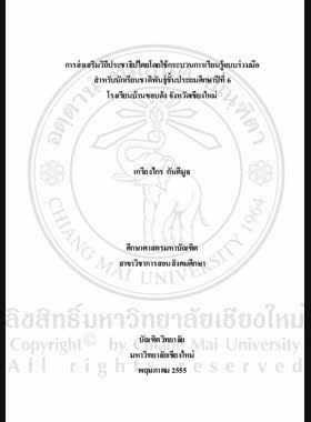 | ชื่อเรื่อง | การส่งเสริมวิถีประชาธิปไตยโดยใช้กระบวนการเรียนรู้แบบร่วมมือสำหรับนักเรียนชาติพันธุ์ชั้นประถมศึกษาปีที่ 6 โรงเรียนบ้านขอบด้ง จังหวัดเชียงใหม่ = Promoting democracy way by using cooperative learning for Prathom Suksa 6 ethnic students at Baan Khob Dong school, Chiang Mai province / เกรียงไกร กันตีมูล |