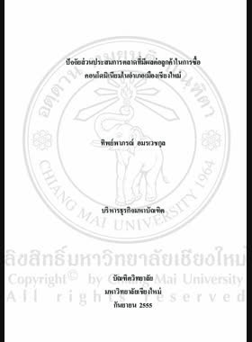 | ชื่อเรื่อง | ปัจจัยส่วนประสมการตลาดที่มีผลต่อลูกค้าในการซื้อคอนโดมิเนียมในอำเภอเมืองเชียงใหม่ = Marketing mix factors affecting customers towards purchasing condominiums in Mueang Mai District / ทิพย์พาภรณ์ อมรเวชกุล |