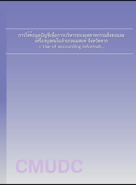| ชื่อเรื่อง | การใช้ข้อมูลบัญชีเพื่อการบริหารของอุตสาหกรรมสิ่งทอและเครื่องนุ่งห่มในอำเภอแม่สอด จังหวัดตาก = Use of accounting information for the management of textile and garment industry in Mae Sot District, Tak Province / พิมพิลาส เนาวรัตน์ |