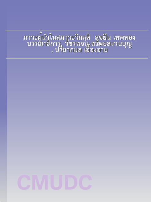 | ชื่อเรื่อง | ภาวะผู้นำในสภาวะวิกฤติ / สุขยืน เทพทอง บรรณาธิการ, วัชรพจน์ ทรัพย์สงวนบุญ, ปรียากมล เอื้องอ้าย |
