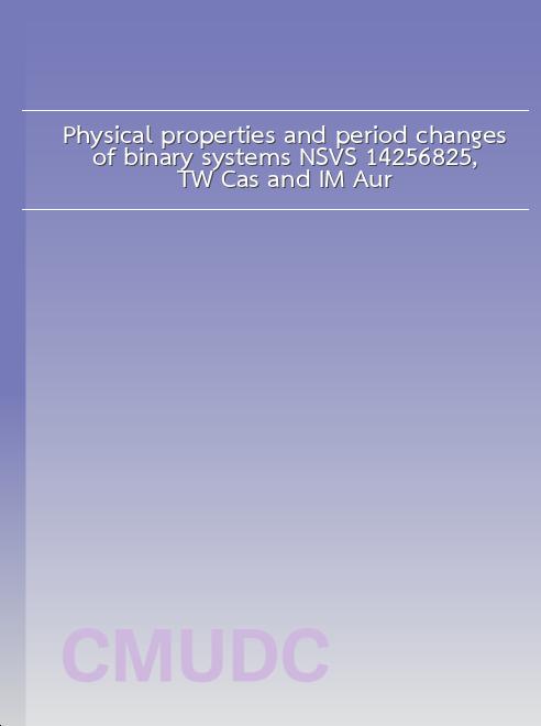| ชื่อเรื่อง | Physical properties and period changes of binary systems NSVS 14256825, TW Cas and IM Aur |